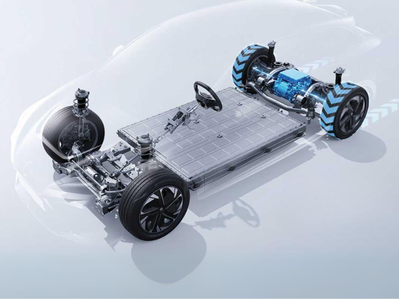 Innovation for electric vehicles especially developed to install the battery in the same layer as the car body structure, using a small electric motor for high performance.